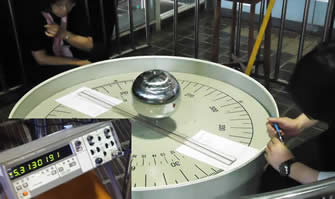 電動回転台関連機器 (3点組)26,000円 振り子の球が入っていて電動回転台NR‐52N型160,000円と併用して実験する。回転台の直径は52cm ピッチ可変 |